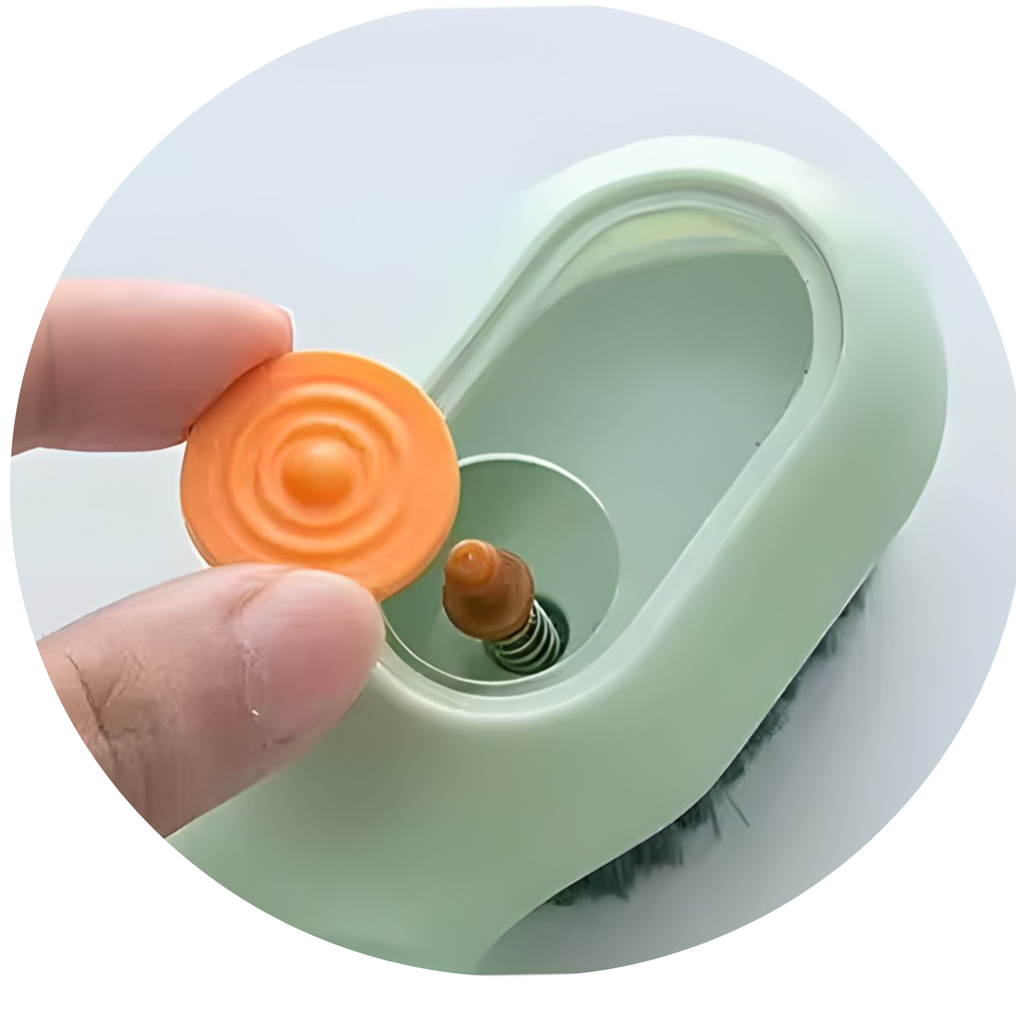 El cepillo cuenta con un sistema de dispensación integrada que permite liberar el jabón o producto de limpieza con un simple gesto. Así evitas estar tomando el detergente aparte y logras una limpieza rápida, controlada y eficiente, ideal para personas con poco tiempo o que buscan máxima comodidad al limpiar.